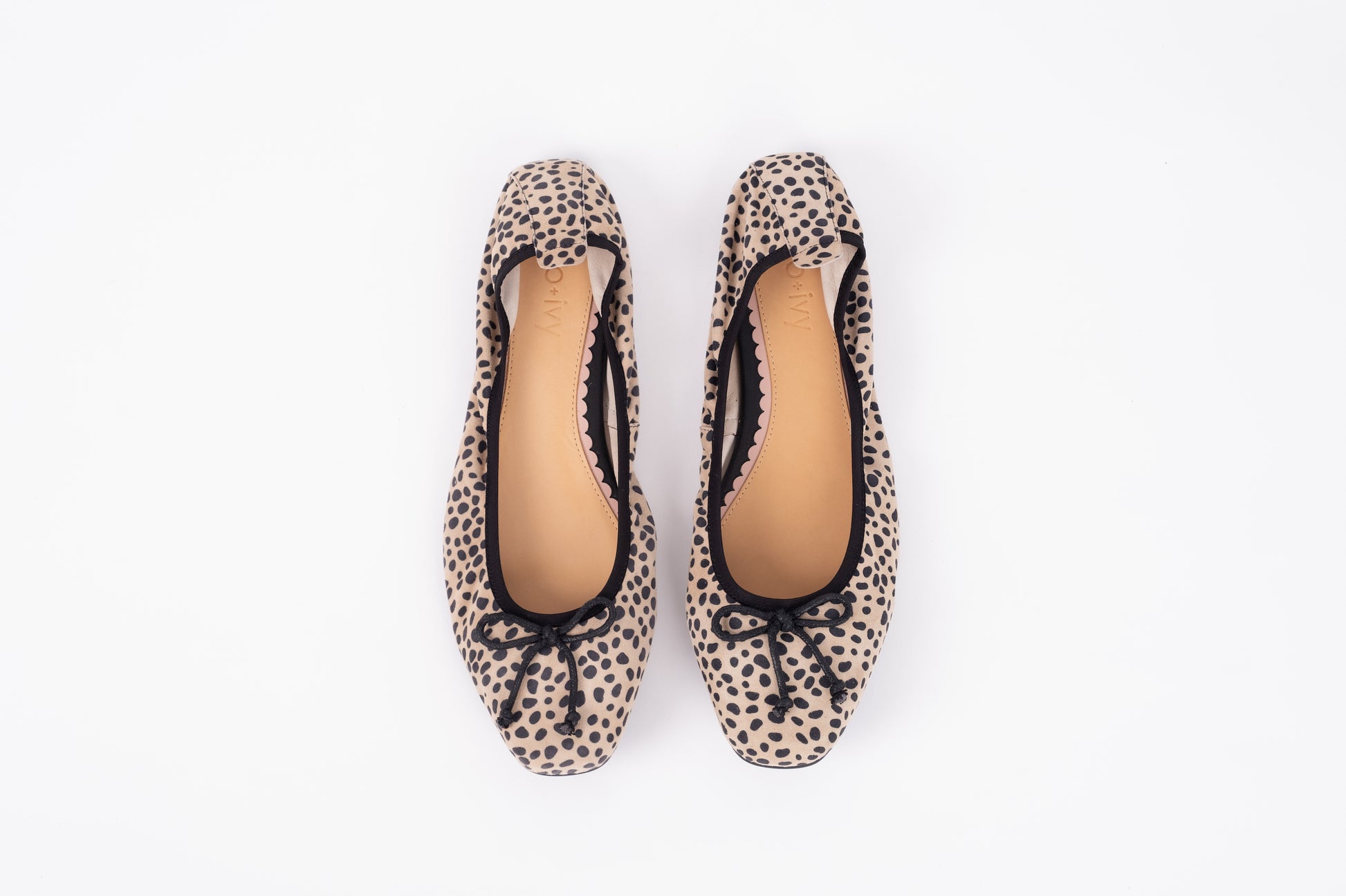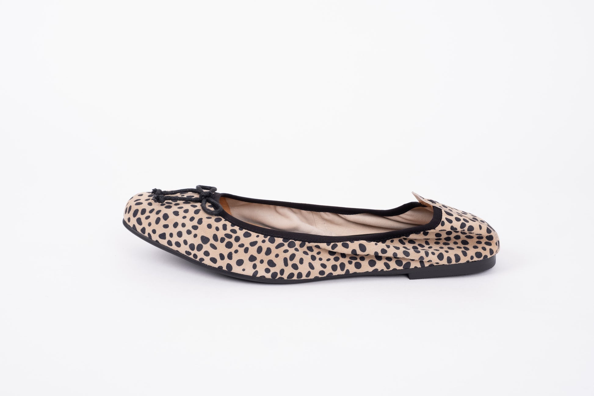 Olivia is a Parisian-style ballet flat, featuring a softly-squared toe and cheetah suede upper. She has a super flexible sole and a comfort-stretch back. Perfect with cropped jeans and a chic blazer.